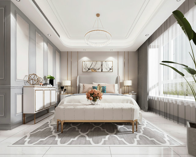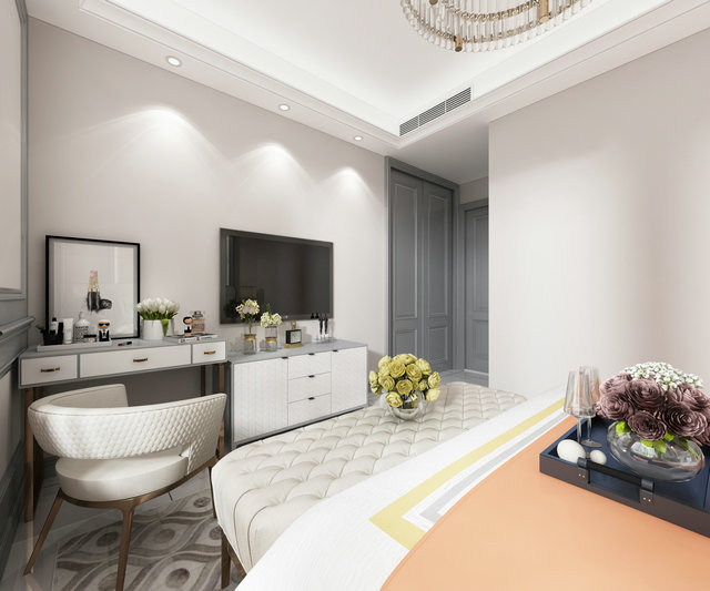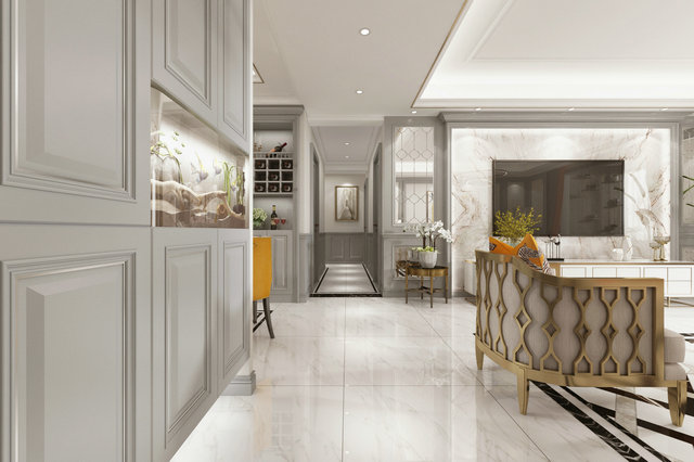 本案設(shè)計業(yè)主為四口之間老人也會偶爾來住需要保留四個臥室,我沒有對墻體有太大的改動,只有入戶處預(yù)留了鞋帽柜的位置,業(yè)主喜歡美式輕奢風(fēng)格,所以在色調(diào)上我選用了暖灰色調(diào),整體風(fēng)格以美式為主。