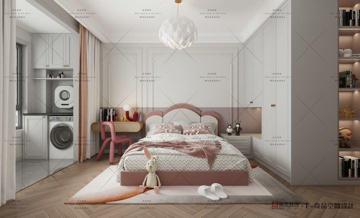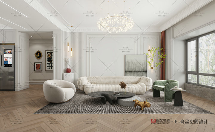 設計說明:法式風格的優(yōu)雅、浪漫、宮廷感深入人心、經(jīng)久不衰,與現(xiàn)代時尚的輕奢風相遇后,則凝結(jié)成一種文藝典雅、與眾不同的空間意境.