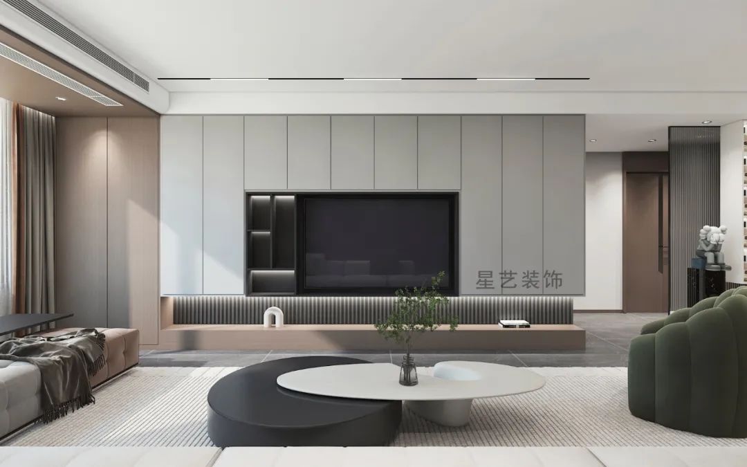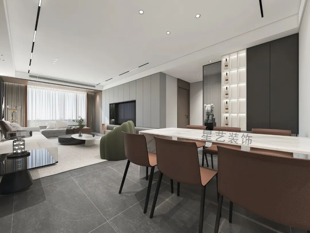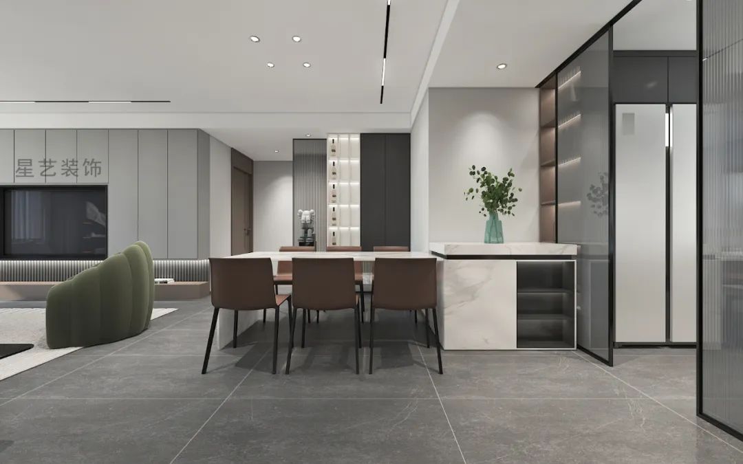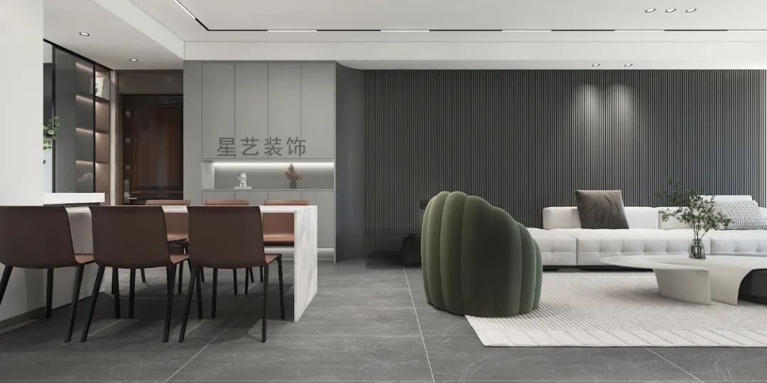 空間線條鮮明,輪廓簡潔明亮,消除一切多余的職能,謙卑且自由地承載著居住者平淡的生活影象,光影和內(nèi)外景觀的處理,帶來靜謐清寂的空間感受。