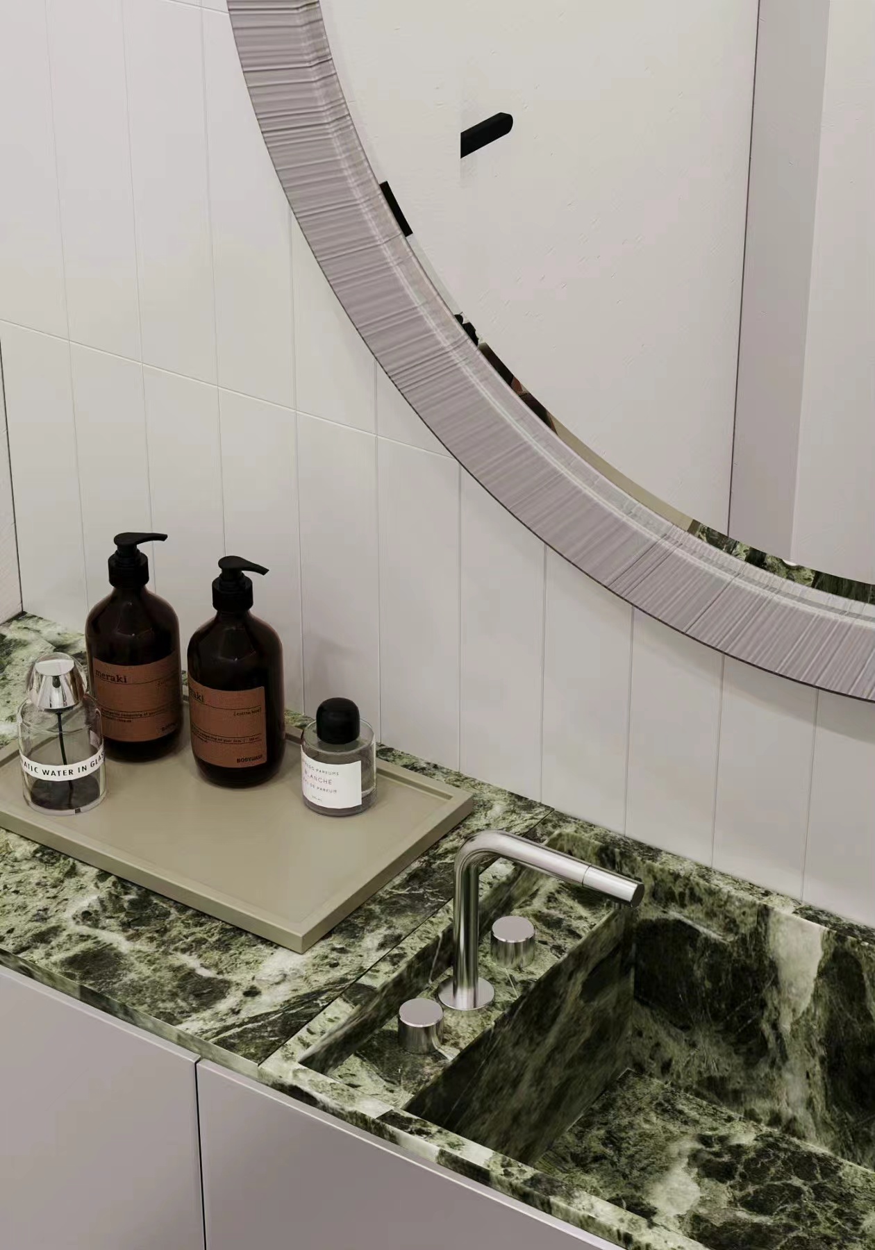 人生的起點(diǎn)不止是降生的那一刻,人生就是不斷地重復(fù)起點(diǎn)去往終點(diǎn)的過程。每個人的起點(diǎn)也許不同,但卻相通。家是起點(diǎn),亦是終點(diǎn)。從大面積的落地窗向外望去,莫愁湖的美景盡收眼底。透明玻璃材質(zhì)落地窗極力模糊了邊界認(rèn)知,讓室內(nèi)與室外處于一種曖昧含蓄的關(guān)系、變化而又和諧。