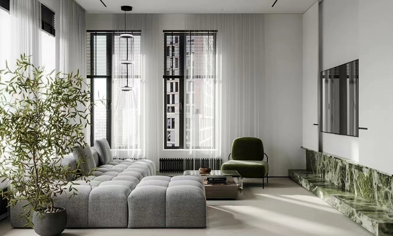 簡潔的表現(xiàn)形式來滿足人們對空間環(huán)境的情感、本能和理性的需求,現(xiàn)代簡約風(fēng)格非常講究的室內(nèi)空間的哲學(xué)和材料的滲透性。