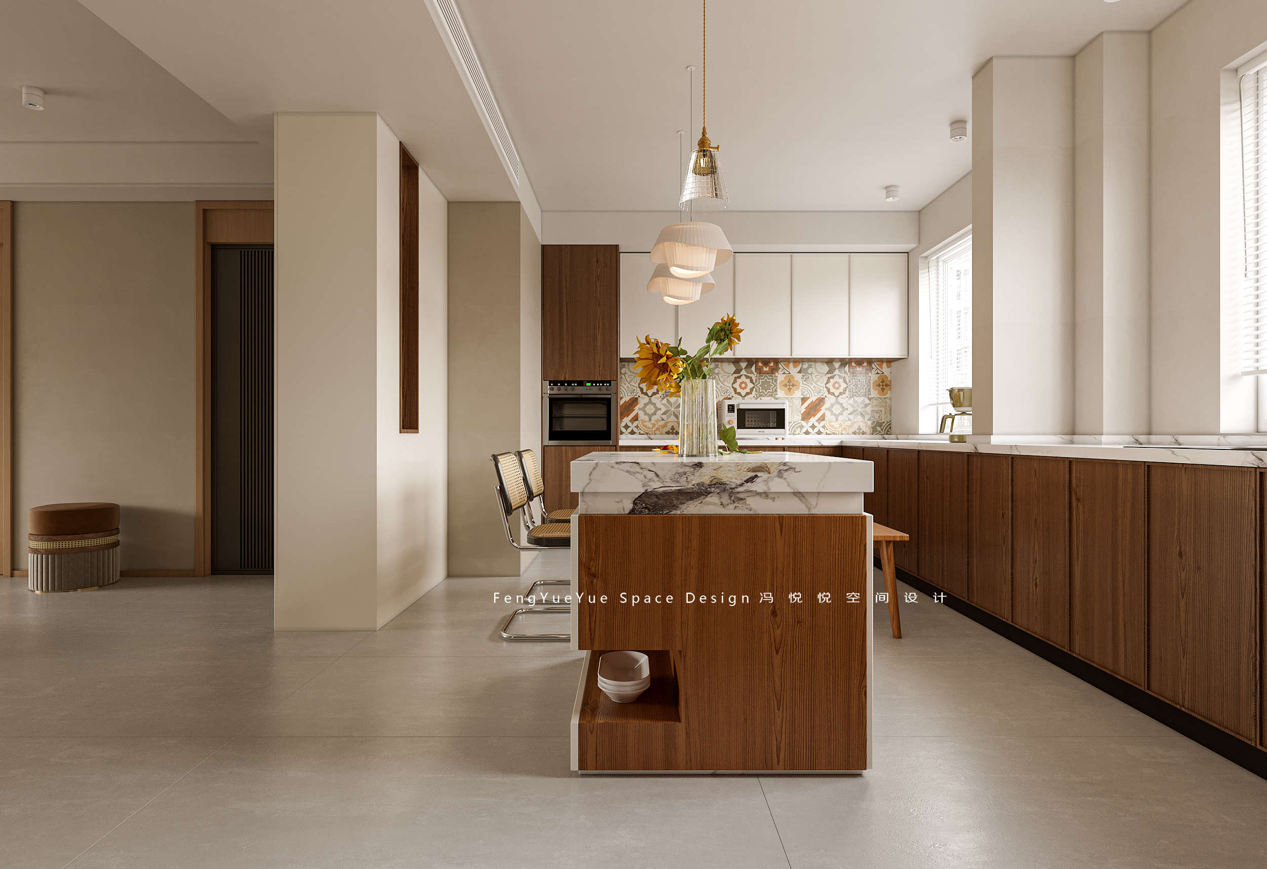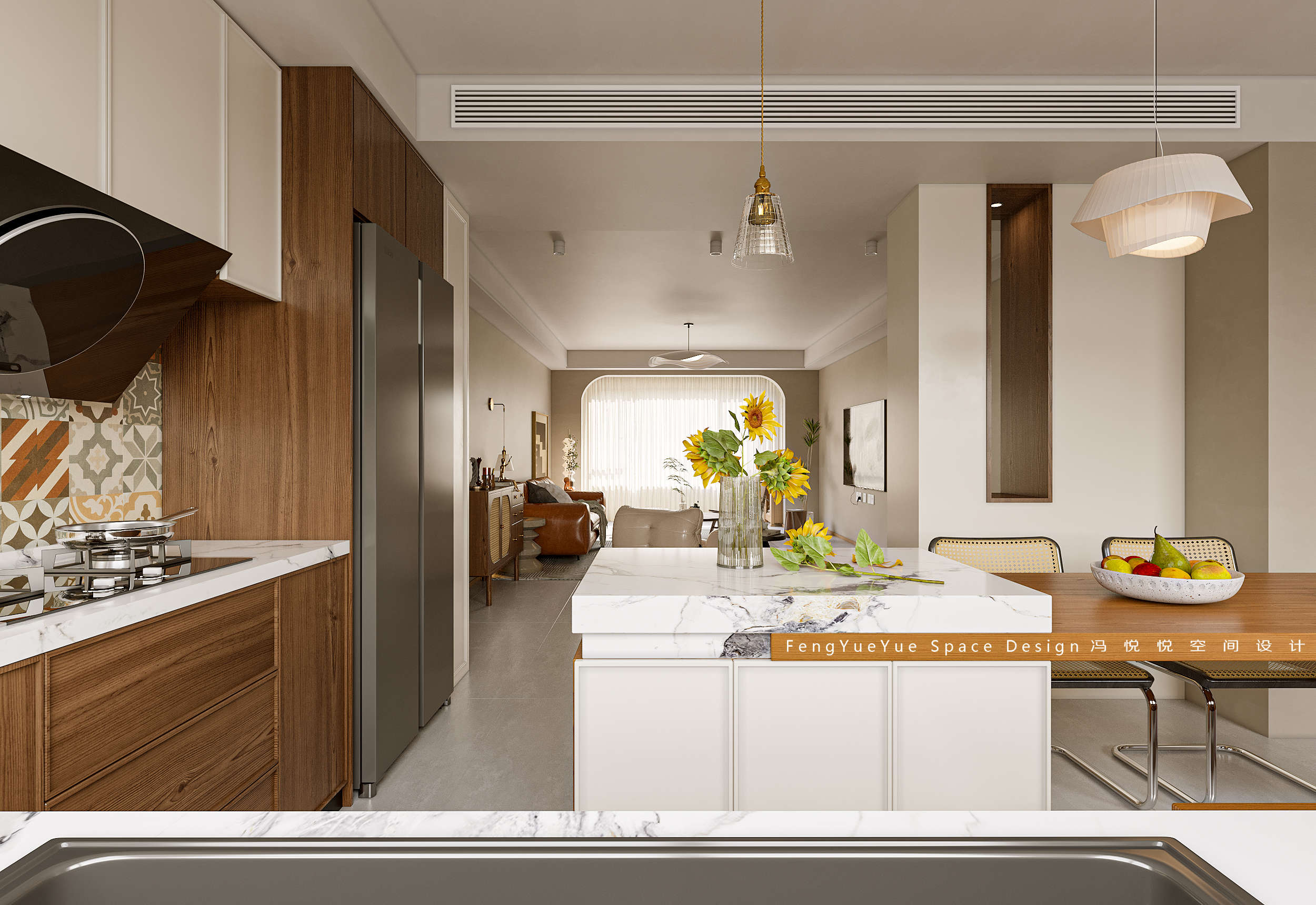 設(shè)計師對原有分散瑣碎的布局進(jìn)行了優(yōu)化,重新劃分功能區(qū)域,打造開放流暢的空間動線;重置室內(nèi)燈光系統(tǒng),烘托出家的溫馨氣氛。