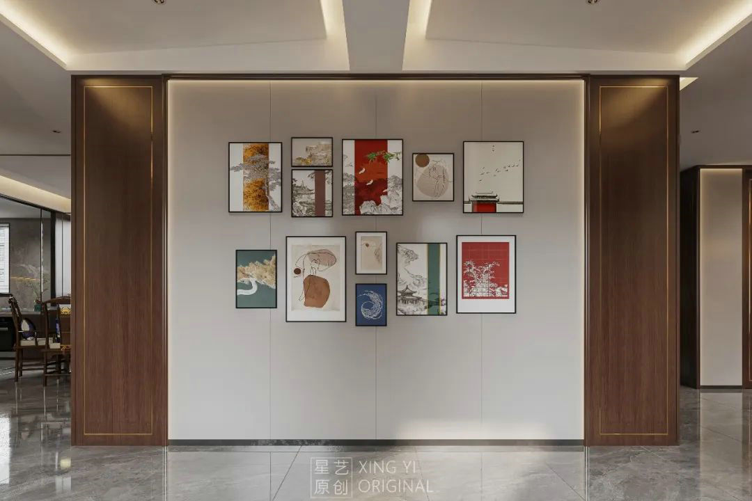 用一種創(chuàng)新的方式讓古典元素與當代極簡設計融合,將源于自然的原木運用到簡潔大氣的現(xiàn)代居室中,營造舒適愜意的理想生活意境。背景墻上旭日初升的中式壁畫,更是唯美儒雅,讓人只想在這東方的詩情畫意里,回歸最真實的恬淡心境。
