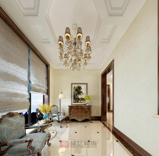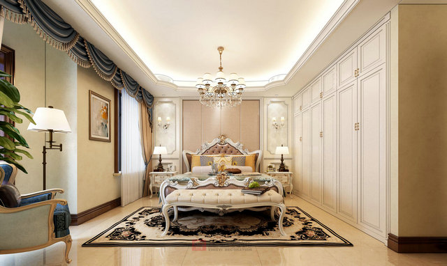 客廳天花茶色立面,展現(xiàn)工藝掘起精湛細緻,佐以黑色鐵件與燈帶引導(dǎo)視覺延伸空間尺度。落地窗前分別以深淺色大理石材鋪敘佐異材質(zhì)搭配,藉以色彩與燈光渲染豐富空間的視覺層次。吧臺代替了餐廳,使空間兼?zhèn)涑燥?,品酒功?/span>,構(gòu)成便利動線,雙面以大理石、鈦金屬與玻璃異材質(zhì)銜接,整合展示收納,滿足兩個場域的雙功能性。主臥房天花以細窄框塑牆體天花,細琢工藝表現(xiàn)石膏線觸感層次。睡眠區(qū)以皮質(zhì)硬包為主牆,天花同以極細藍線段呼應(yīng),衣柜以實木皮為內(nèi)佐鐵件茶玻搭配,烘托細緻感受。