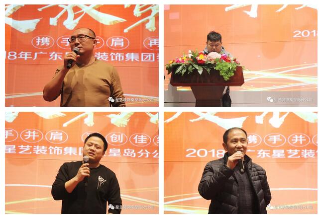 總經理胡久亮在大會上盤點了2017年秦皇島星藝裝飾重點推進的工作內容及成果,通過數據分析發(fā)展過程中存在的問題,詳細解讀了2018年秦皇島星藝的重點工作規(guī)劃和發(fā)展目標。今年,胡總還兼任了工程部總監(jiān)一職,狠抓、嚴抓工程質量,爭取每一單都要做到客戶滿意。