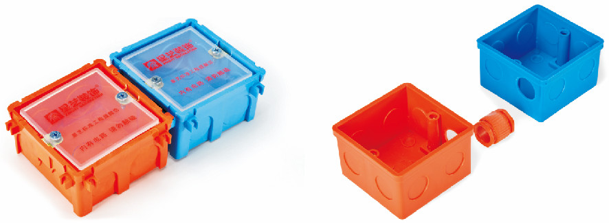 型和雙鎖頭連接型兩種底盒。在雙底盒、多底盒連接時(shí),空隙緊密、水平一致、安裝方便,并具有良好的阻燃性、美觀性和實(shí)用性。底盒分為藍(lán)色、紅色,便于在強(qiáng)、弱電安裝時(shí)更好的區(qū)分開。